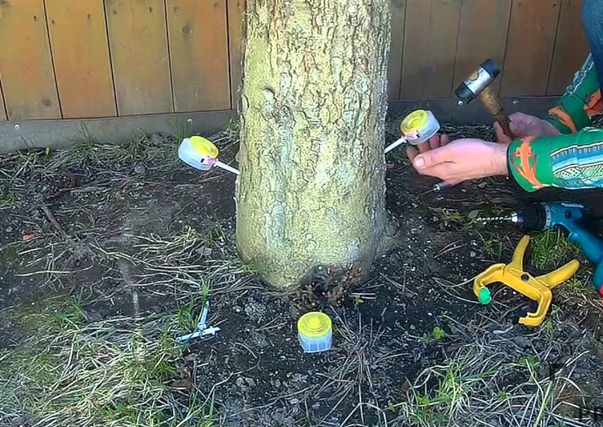 Плодовые и садовые деревья нуждаются в защите от насекомых, бактерий, грибковых заболеваний. Их обрабатывают специальными растворами методом опрыскивания и подкармливаются прикорневой питательной смесью. Но часто такого метода защиты становится недостаточно. Относительно новый и эффективный способ ухода за растениями – лечение деревьев инъекциями. Препараты подбираются после биохимического анализа дерева и вводятся непосредственно под кору, питая ствол постепенно.